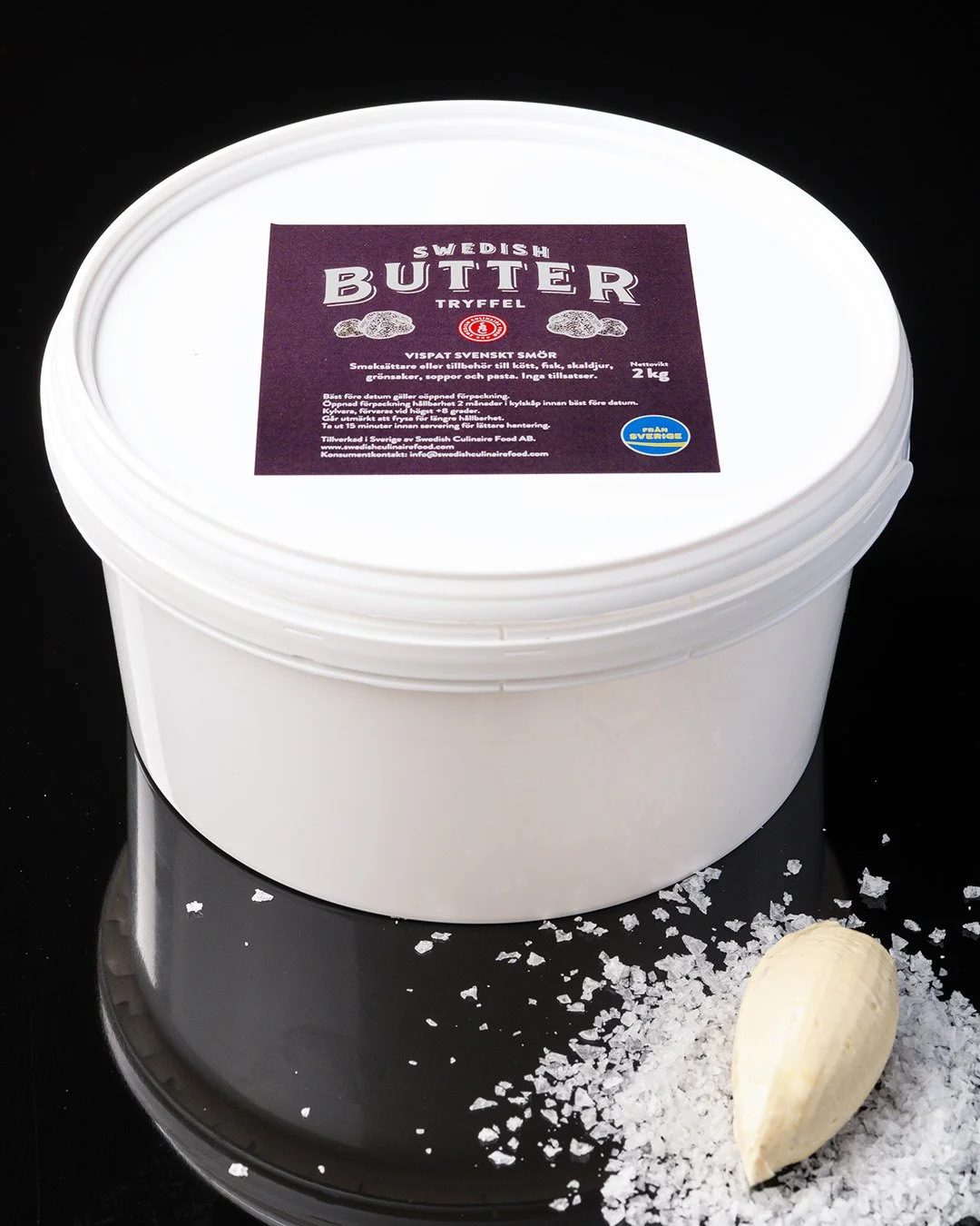 SMÖR* (92%), rapsolja, flingsalt, tryffel 1 % (Tuber aestivum Vittad), tryffeljuice, solrosolja, salt, arom. *Ursprung: Sverige. Tryffel är inte från Sverige.