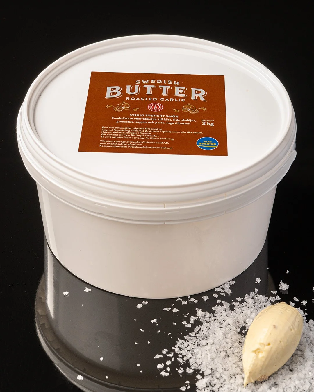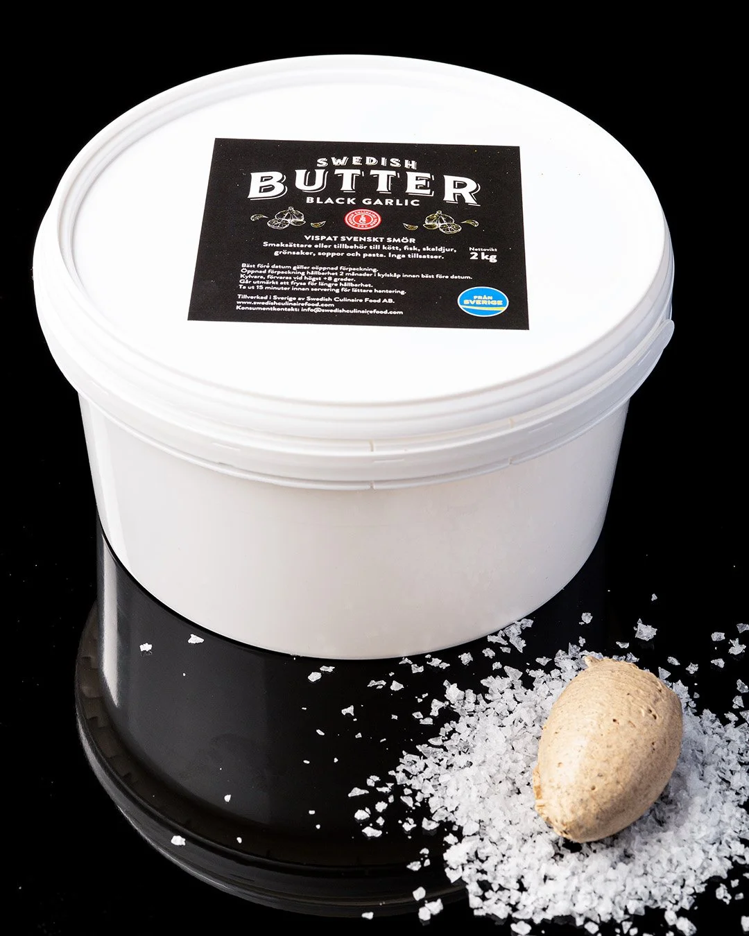 SMÖR* (87 %), svart vitlök (8%), rapsolja, flingsalt. *Ursprung: Sverige. Svart vitlök är inte från Sverige.